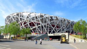 The most striking feature of the Bird's Nest is its exterior steel framework, which consists of large interlocking beams. These beams were designed to look like the interwoven sticks of a bird’s nest, giving the structure both its name and its unique aesthetic appeal.