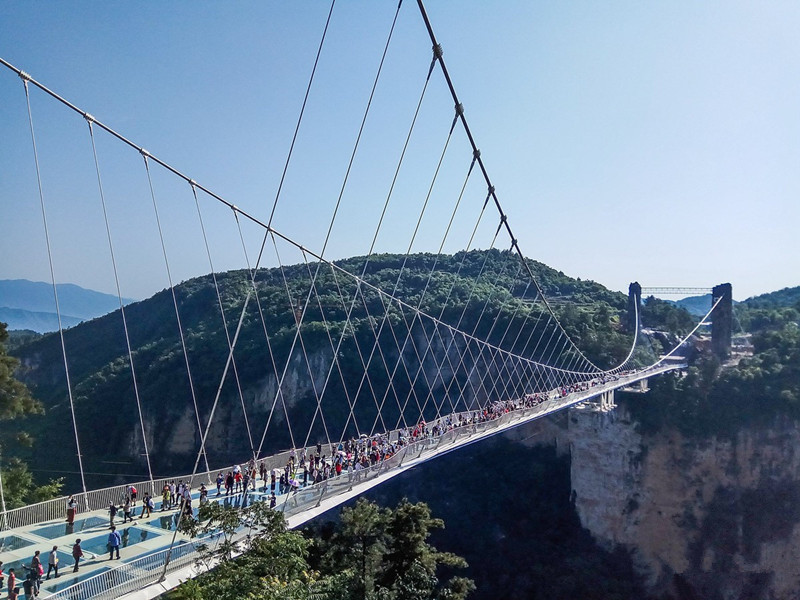 - Zhangjiajie Grand Canyon Glass Bridge: Experience the thrill of walking on the world's longest and highest glass-bottomed bridge at Zhangjiajie Grand Canyon. Admire stunning views of the canyon and brave the transparent walkway for an unforgettable adventure.