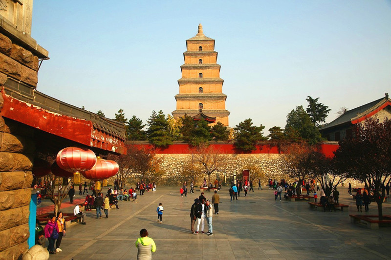 - Giant Wild Goose Pagoda (Dayan Pagoda): Visit the Giant Wild Goose Pagoda, a UNESCO World Heritage Site and iconic landmark of Xi'an. Explore the ancient Buddhist pagoda, built in the Tang Dynasty, and admire its architectural beauty and historical significance.
