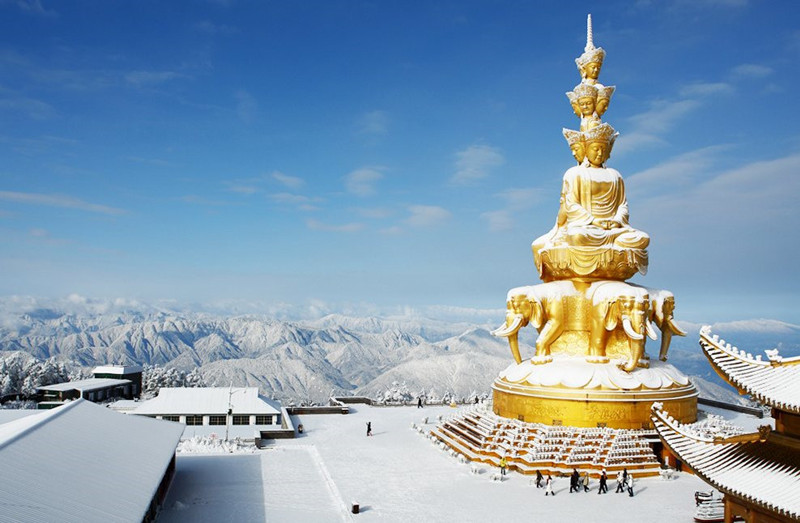 - Golden Summit (Jinding): Ascend to the Golden Summit, the highest peak of Mount Emei accessible by cable car. Enjoy panoramic views of the surrounding landscape, including sea clouds, sunrise, and the iconic Huazang Temple.