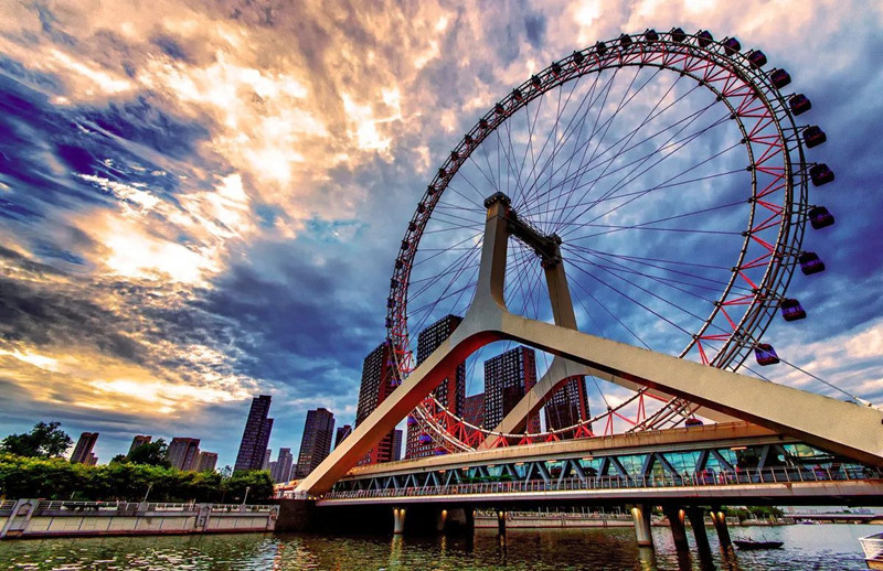 - The Tianjin Eye: Ride the Tianjin Eye, a giant Ferris wheel located on the Yongle Bridge over the Hai River. Enjoy panoramic views of the city skyline, including landmarks like the Tianjin TV Tower and Italian-style architecture along the riverbank.