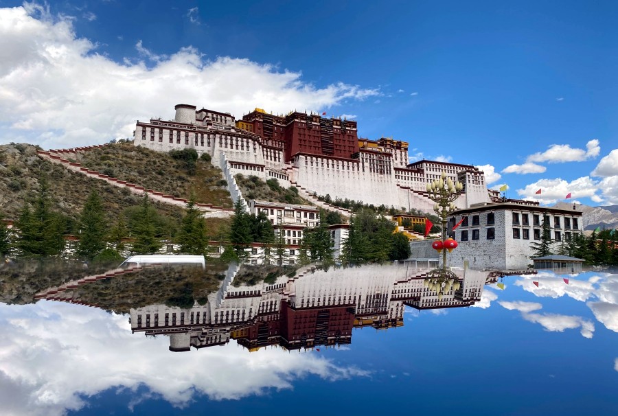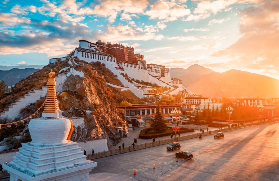 Lhasa, the capital of the Tibet Autonomous Region, lies on the Lhasa River's north bank in a valley of the Himalayas. Rising atop Red Mountain at an altitude of 3,700m, the red-and-white Potala Palace once served as the winter home of the Dalai Lama. The palace’s rooms, numbering around 1,000, include the Dalai Lama’s living quarters, as well as murals, chapels and tombs.