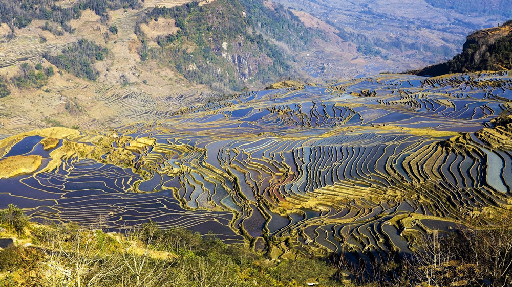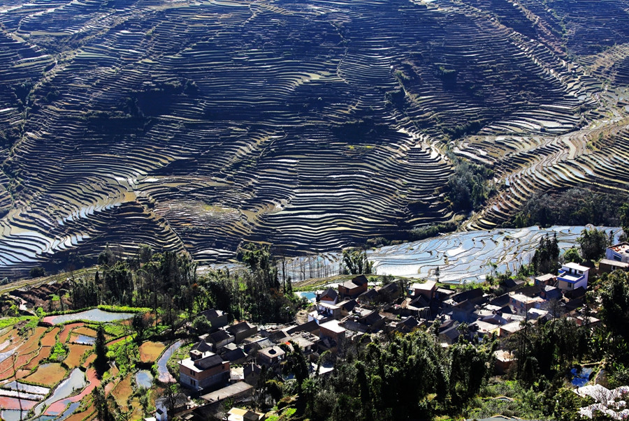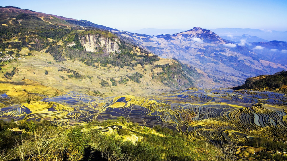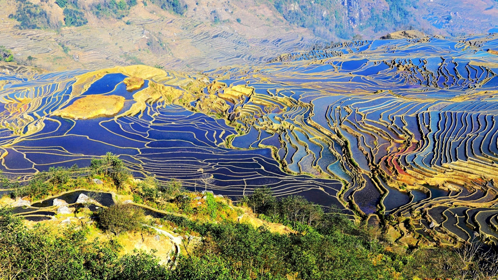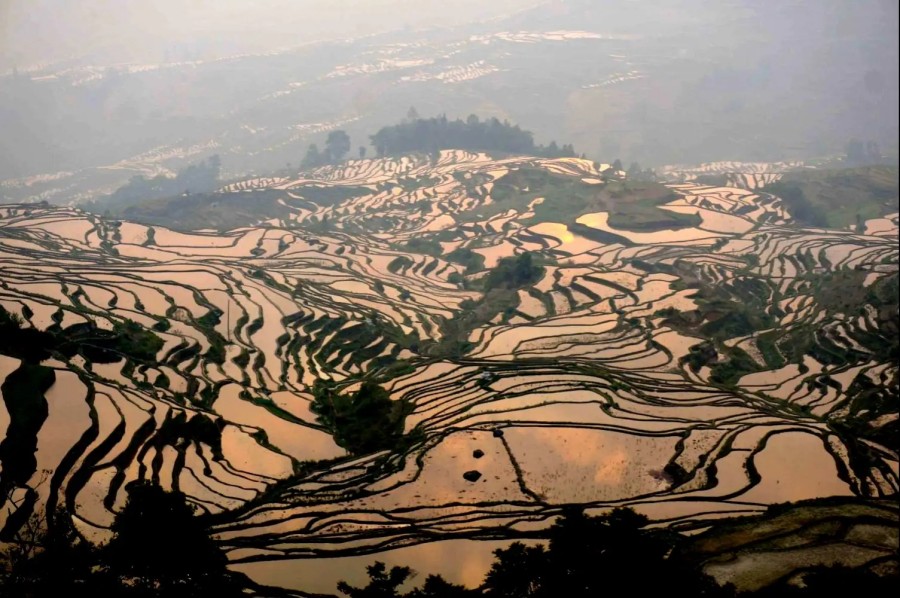 Yuanyang Hani Rice Terraces is located in the south of Yunnan province, the south section of Ailao mountain range. Yuanyang is adjacent to Jinping County in the east, Lvchun County in the south, Honghe County in the west, and faces Jianshui County, Gejiu City and Mengzi City in the north across the Honghe river. Yuanyang becomes well-known for its spectacular Hani rice terrace. Yuanyang County has 170,000 mu (about 11333 hectares) of rice terraces, which is the core area of Honghe Hani Rice Terraces. It is one of the important producing areas of Yunnan tropical fruits, as well as cloud and mist tea. The 6 cultural attractions, mainly consisting of Hani minority and 170,000 mu of terraced fields, constitute a beautiful and spectacular picture scroll.