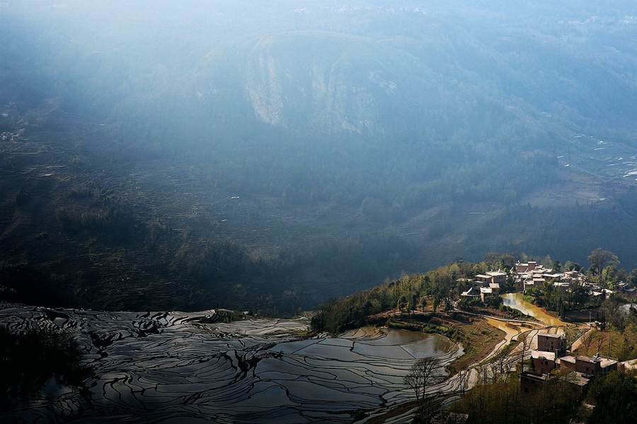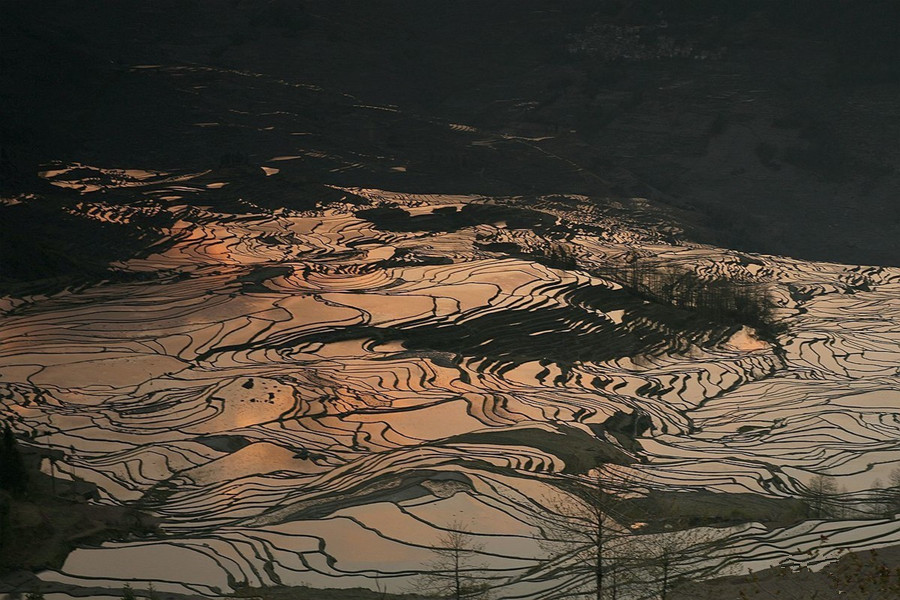 - Terraced Landscape: Yuanyang is mainly terraced landscape, and is the core area of Honghe Hani Rice Terraces. The Yuanyang Hani Rice Terraces mainly include three major scenic spots, Bada Rice Terraces, Laohuzui Rice Terraces and Duoyishu Rice Terraces. A vast expanse of rice terraces form a magical and magnificent landscape in the shadow of vast forests and under the cover of boundless sea of clouds.