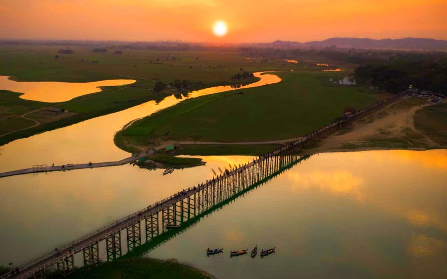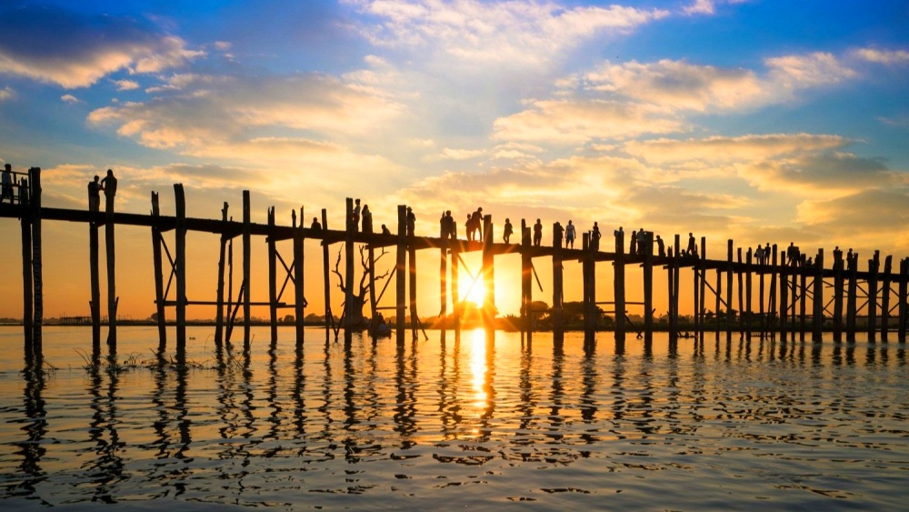 - U Bein Bridge: Visit the iconic U Bein Bridge, the world's longest teakwood bridge, located near Mandalay in the town of Amarapura. Take a stroll across the bridge at sunset for picturesque views over Taungthaman Lake.