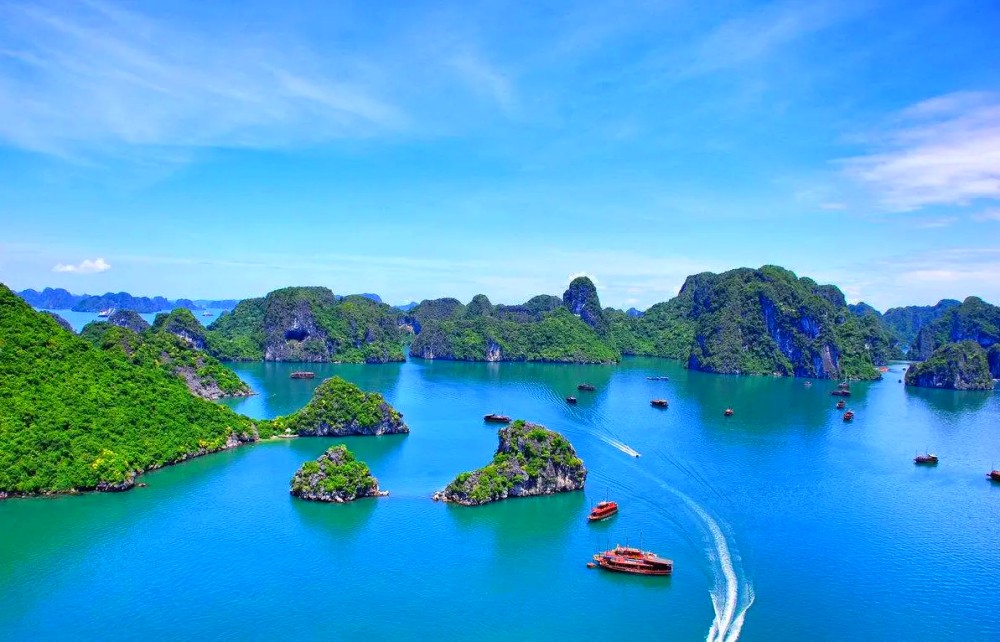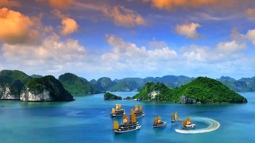 - Halong Bay Cruises: Take a cruise on the emerald waters of Halong Bay to explore its iconic limestone karsts, hidden caves, and floating villages. Overnight cruises allow you to witness breathtaking sunsets and sunrises amidst this natural wonder.