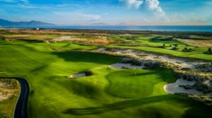 KN Golf Links - Cam Ranh, beautifully situated in the picturesque coastal city of Cam Ranh, Khanh Hoa Province, Vietnam, stands as a testament to the design prowess of the legendary golfer Greg Norman. Since its inauguration in 2018, it has swiftly ascended to prominence, emerging as a top-tier golfing destination that attracts aficionados from across the globe. This acclaimed course forms an integral part of an expansive 800-hectare development project, which boasts eight kilometers of pristine oceanfront along the East Sea. The landscape is marked by stunning white dunes and an extensive, gracefully curving coastline, offering golfers not just a game but an experience amidst breathtaking natural beauty.